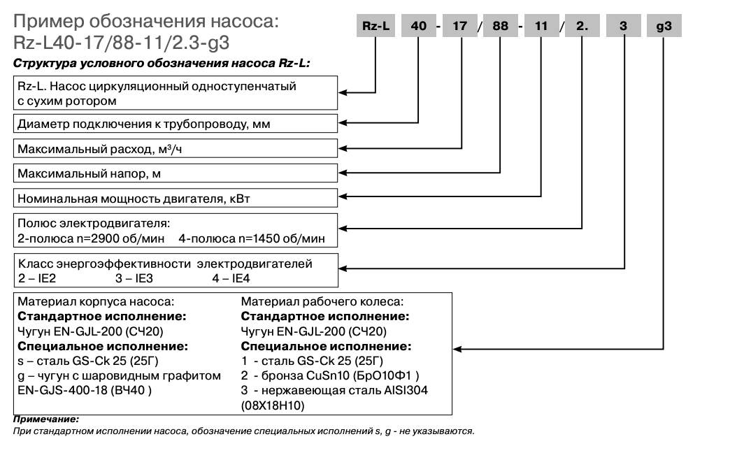 Общие данные насосов Rz-L
