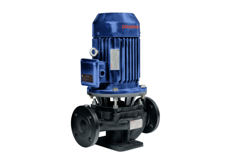 Rz-L. Насос циркуляционный одноступенчатый с сухим ротором, типа «ин-лайн», в моноблочном исполнении с низким уровнем шума и вибрации, с неподвижно присоединенным и вертикально установленным стандартным электродвигателем с необходимым классом энергоэффективности IE2, IE3, IE4. На насосах устанавливаются высокотемпературные скользящие торцевые уплотнения, не зависящие от направления вращения. Фланцы имеют штуцеры R¼ для измерения давления до и после насоса. В нижней части корпуса расположено сливное отверстие, а верхней части корпуса ручной воздухоотводчик для спуска воздуха. Насос предназначен для частных и промышленных систем отопления, вентиляции, кондиционирования и водоснабжения. Трёхфазный электродвигатель с кабельным вводом.